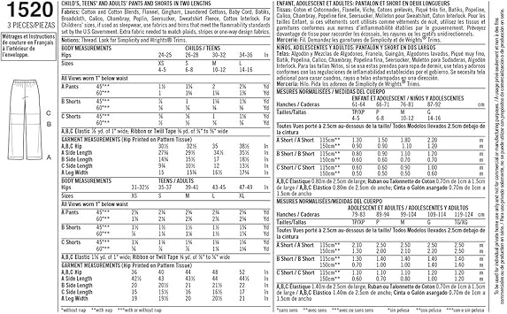 Simplicity 1520 Child S Teens And Adults Pants And Shorts